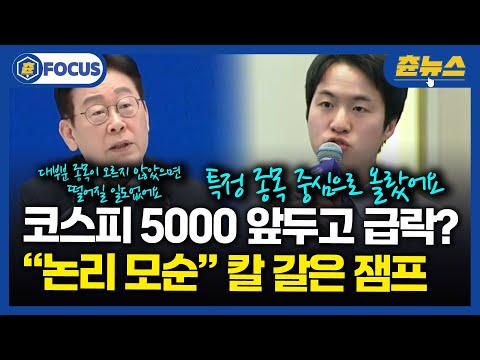 [FOCUS] 코스피 5000 목전에 두고 급락하면 어쩌냐는 기자 질문에 레전드 말빨 보여주는 이재명 대통령 ㄷㄷ #코스피 #주식