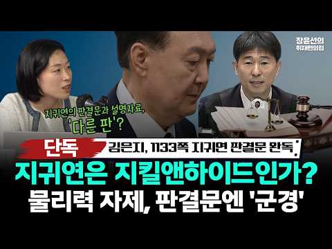 2026년 2월 25일 장윤선의 취재편의점 '기자들의 눈(구교형, 김은지 기자)' 코너의 클립영상입니다.[단독] 김은지, 1133쪽 지귀연 판결문 완독지귀연은 지킬앤하이드인가?물리력 자제, 판결문엔 '군경'#단독 #지귀연 #판결문 #윤석열 #김은지