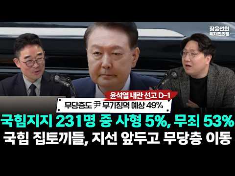 [윤석열 내란선고 D-1] 무당층도 尹 무기징역 예상 49%! 국힘지지 231명 중 사형 5%, 무죄 53%..국힘 집토끼들 …