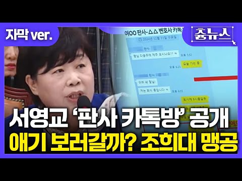 [자막] 판사-변호사 카톡방 공개한 서영교.. 애기 나오는 집 보러 갈까? 외치며 조희대 맹공 #서영교 #조희대 #국정감사 > 시사 뉴스